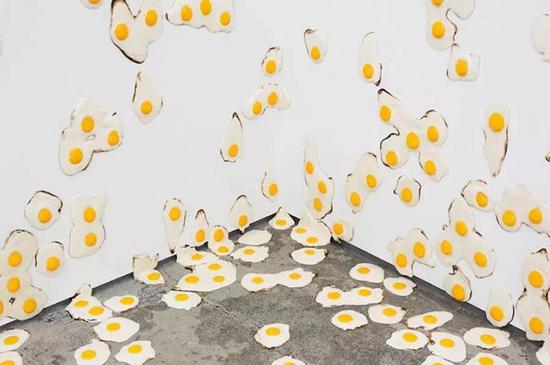 艺术家Christopher Chiappa显然对鸡蛋有自己的理解。这家伙估计很爱吃煎鸡蛋。于是他用7000个煎鸡蛋高出了一个创意的作品出来。通过精心的铸造和浇注与打磨上漆,得到了高度逼真的煎鸡蛋模型。可不是一两个。而是7000个。于是这些家伙将这些煎鸡蛋都呼到了墙上。于是一个伟大的作品就诞生了。大家一起来感受一下。