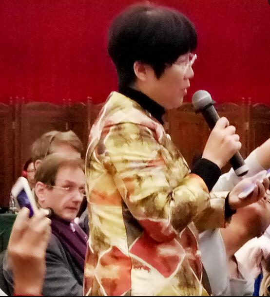 香港商报记者齐晓彤在记者会现场向周小川提问。 香港商报特约记者 金立冬摄