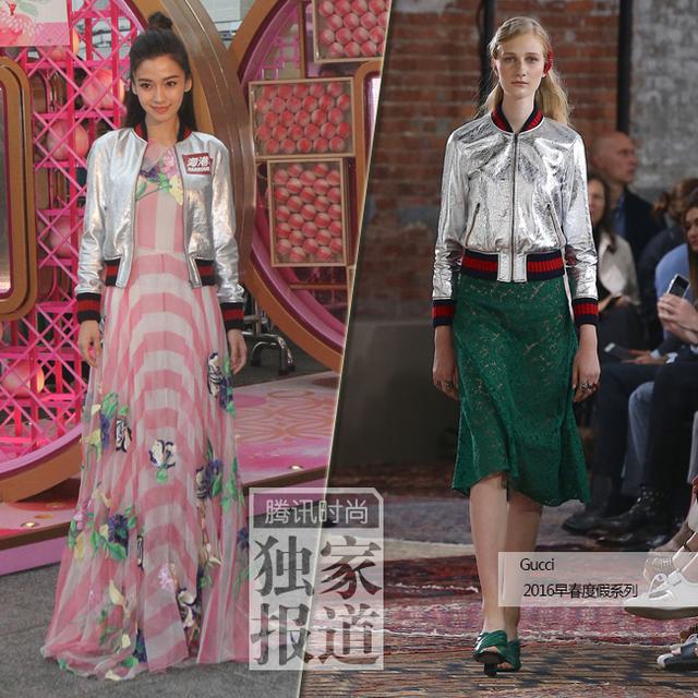 2016年1月27日,Angelababy香港出席新春活动。一直以甜美女神形象示人的她这次选择了Gucci金属色棒球夹克,俏皮可爱。内搭选择的粉色印花长裙不仅少女气息爆棚,与短打上衣搭配更是打造了完美的身材比例。高高的丸子头更添一丝俏皮,宛然一只鬼马小精灵~