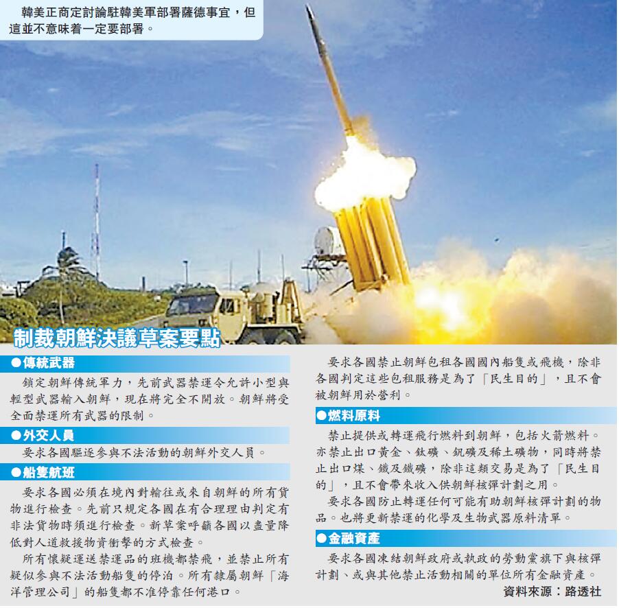 有媒體分析稱,這次安理會決議草案的最大特點,就是強制規定聯合國成員國對所有經其領土來往朝鮮的貨物進行檢查。此前,成員國僅被要求在有「合理理由」認為存在非法貨物的情況下進行檢查。安理會此前已通過4項對朝制裁決議。