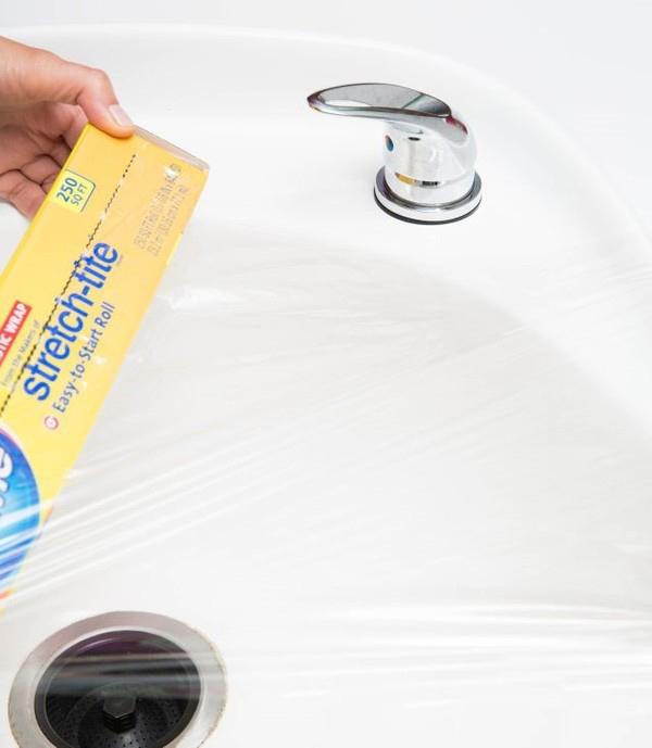 1.梳头发之前,用保鲜膜封住水槽,不但掉发好处理,而且水槽再也不会堵了。