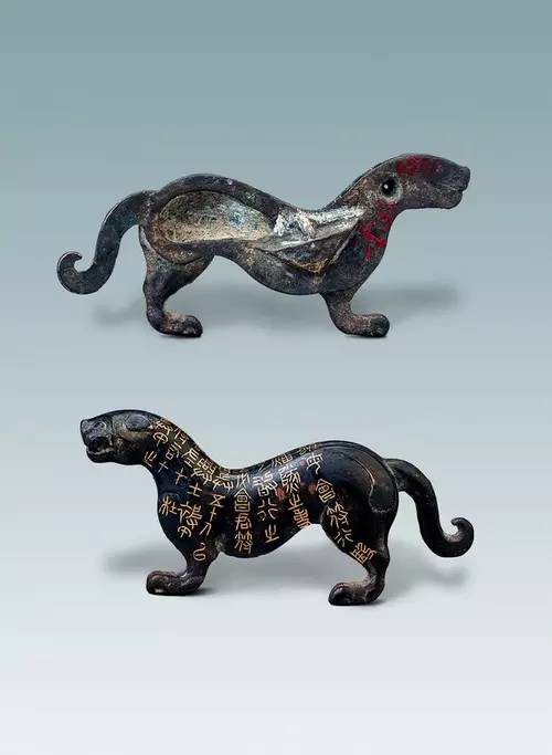 虎符腹部铭文:“铜虎符左”“铜虎符右”。
