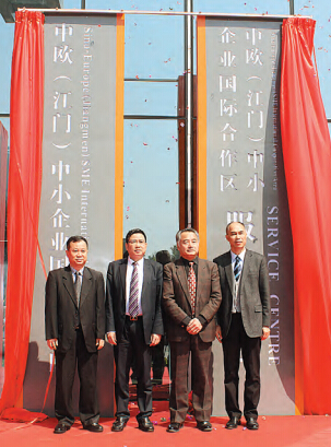 江門市委書記毛榮楷為中歐(江門)中小企業國際合作區核心區及6個基地授牌。6個基地包括智能制造、教育裝備產業基地(蓬江區)、光機電一體化產業基地(江門高新區)、軌道交通裝備產業基地(新會區)、清潔能源及裝備產業基地(台山市)、新材料產業基地(開平市)、智能裝備制造基地(恩平市)。