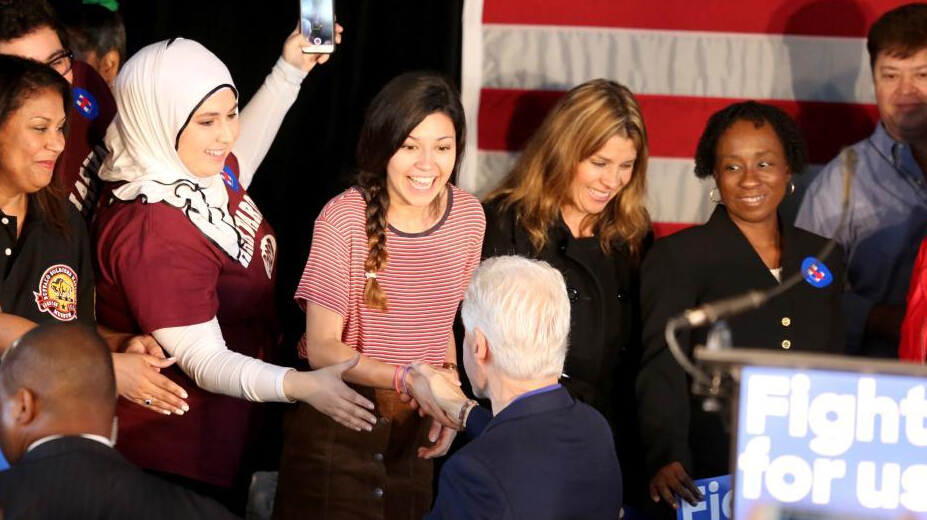 演講后,克林頓與支持者互動。 中新社記者 王歡 攝