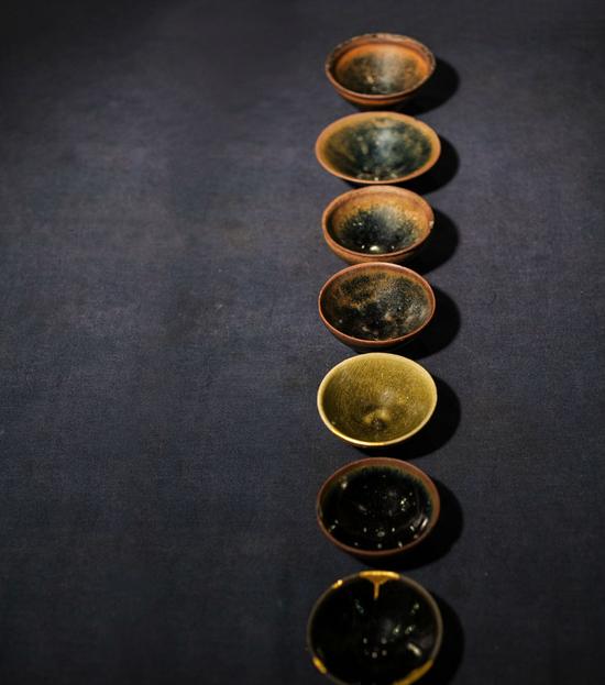 由于建盏的纹样是在高温窑火中,因釉面自然流动而形成的花纹,所以世界上没有任何完全相同的两只,每只盏都是孤品,都值得品读、把玩、收藏。
