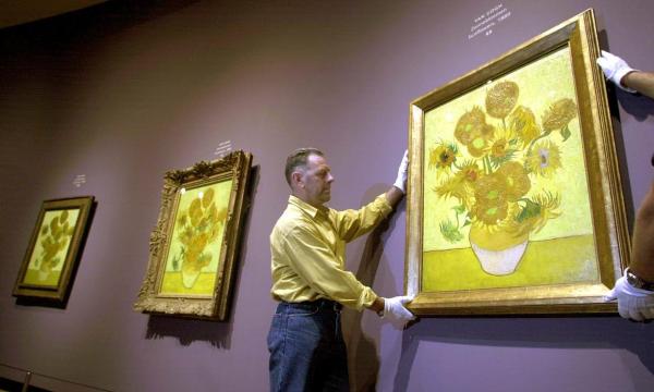 2002于阿姆斯特丹展出的凡·高《向日葵》的三个版本。图片: Robbert Slagman