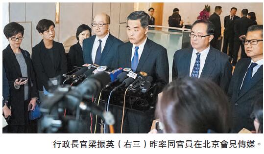 CY说,与王光亚会面时谈及香港的基本建设,有很多方面都需要国家支持、内地省市的配合,包括港珠澳大桥、机场第三跑道、高铁香港段工程,对香港日后的发展都非常重要,可以为本港提供更高更大的发展空间,包括事业空间。他相信,基本建设发展得好,对港人日后的事业发展空间有提升和扩大作用。对於李波事件,他说一直有向内地表达特区政府关注并保持密切联系,政府会继续跟进。