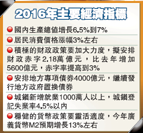 分析人士指,去年以來,經濟下行壓力持續增大,結構轉型問題亦突出,因而在區間調控之外,定向調控和相機調控意義更大。2016年,中國經濟不僅面臨下行風險,還面臨通脹上行、外匯風險、資本市場風險等多重風險。由於這些風險方向不一,而且風險間的切換更加頻繁,因此,相機調控或成2016年重點。