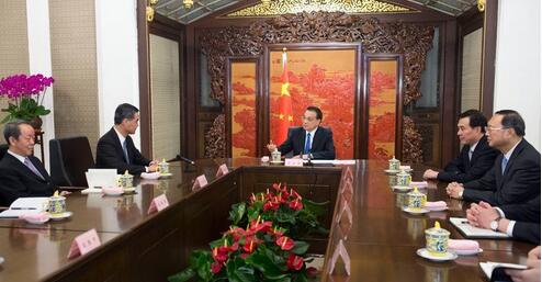 去年12月23日,国务院总理李克强在北京中南海紫光阁会见来京述职的香港特别行政区行政长官梁振英。