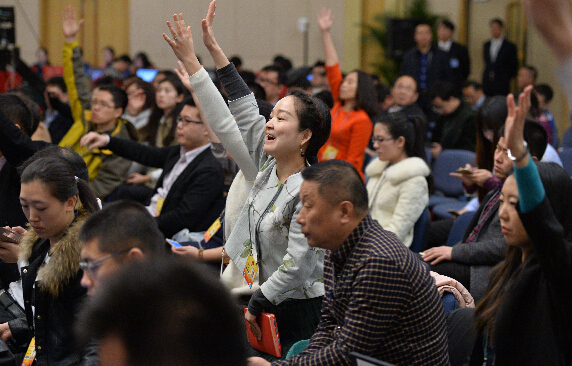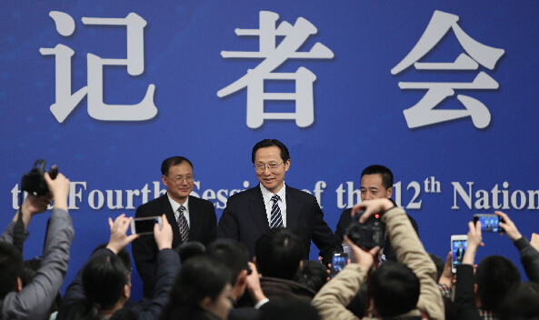 农业部部长韩长赋等就“转方式调结构 加快发展现代农业”答记者问3月7日,十二届全国人大四次会议新闻中心举行记者会,邀请农业部部长韩长赋、新闻发言人叶贞琴就“转方式调结构 加快发展现代农业”的相关问题回答中外记者的提问。这是记者会结束后,韩长赋准备离场。