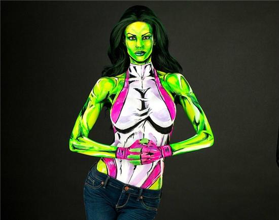 这些看起来就像漫画书里的真实形象,实际上,这些图片是一位女性人体画家的照片。