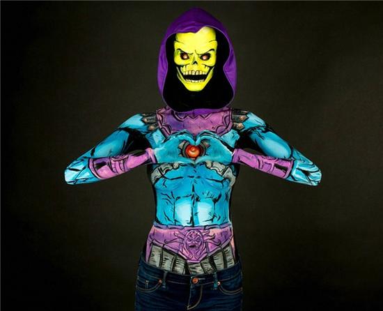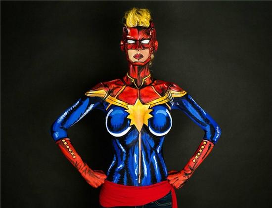 凯·派克是加拿大卡尔加里的一位设计师和模特,她要花费15个小时在自己身上画上这些漫画里的超级英雄和反派人物。