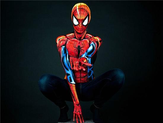 图六:这张照片是《超凡蜘蛛侠》。和帆布画不同,身体作画是很难的。