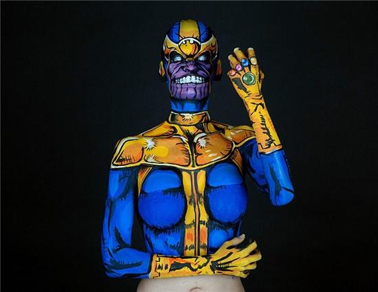 图七:凯只画上身的前半部分,因为每次作画要花掉她150美元。这张照片是“灭霸”,漫威漫画中的超级反派。