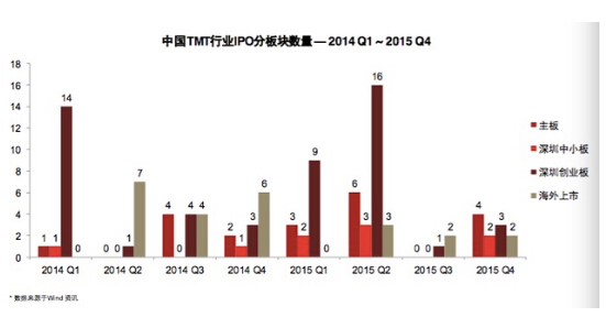 高建斌表示:“2015年下半年中國的IPO歷經暫停又重啟,上市熱潮遠不如上半年,預期2016年TMT IPO形勢會有所改善。境外已上市企業的私有化將會逐漸減少,同時中國TMT行業境外上市也會在短期內出現低潮。”