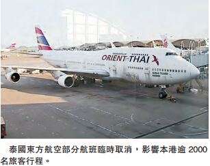 泰國東方航空回覆傳媒查詢時表示,涉事航班編號為「OX203」或「OX200」,屬波音747客機,該機前晚由泰國飛返香港后,發現有機件損壞,基於乘客安全考慮,公司決定停飛,讓飛機留港維修。