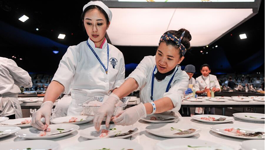3月12日,5位亞裔名廚在2016洛杉磯經典全明星廚師廚藝大展的“東西方之夜”上為現場200余名民眾奉獻精美的東西方合璧大餐,這是該活動首次開設亞洲特色的美食專場。本屆廚藝大展于3月9日至12日舉行,包括中、法、美、西四個菜系的40余位名廚參與,每日有超過200人現場品鑒各類菜肴。新華社記者張超群攝