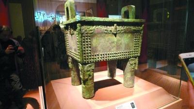 在数量众多的随葬品中,有4件妇好儿子祭献的器物,展览序厅正中的司母辛铜方鼎就是其中一件,也是妇好墓出土的最重的一件青铜器。铜方鼎原为一对两件,口沿下一周夔(kuí,龙纹的侧面像)龙纹为主纹饰。铭文“司母辛”铸于口下内壁,意思是妇好的子女为祭祀亡母辛而铸此鼎,“辛”是妇好去世后在宗庙被供奉的庙号。“此鼎重达117.5公斤,需要四个人同时搬动。”冯好讲述了布展时遇到的难题,“普通展柜因为开门的关系,只能两个人同时往上搬。所以我们特别设计了这个展柜,允许四个人站在四边同时使力。”