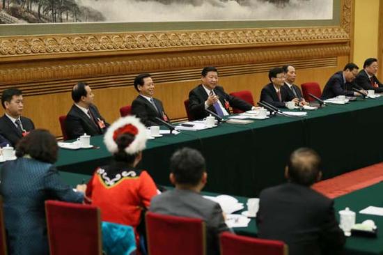 2016年3月8日,習近平參加十二屆全國人大四次會議湖南代表團的審議。新華社記者蘭紅光攝