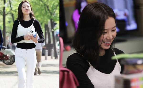 同样在韩剧《上流社会》里,扮演富家小姐的UIE也秉承着时髦星人的优良传统,把灰色吊带穿在白色衬衫外面。