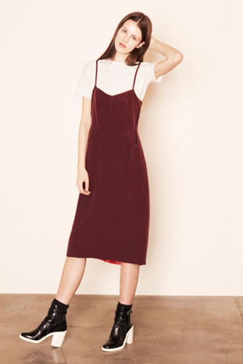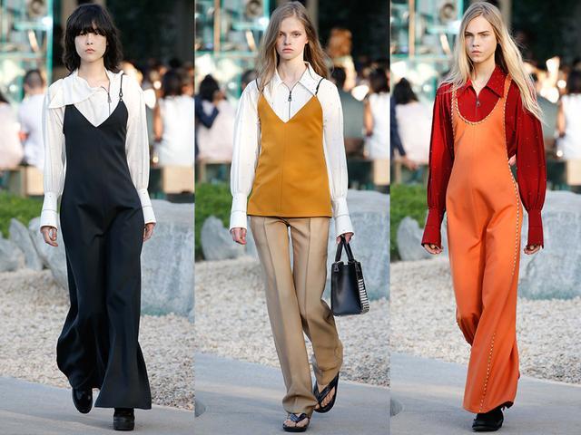 Louis Vuittion2016早春秀场上我们也见过这样的搭配大法了:细肩带吊带长裙、姜黄色吊带衫搭配衬衫。