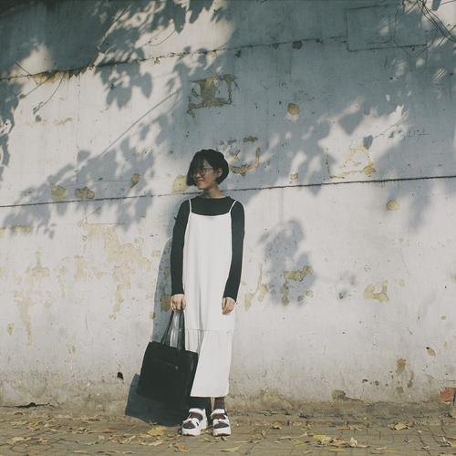 吊带叠穿法已经流行有一阵子了,还没学会的你,赶紧get起来! 【搭配Tips】 Tips1:颜色要有区别 打底衫一般选择白色的,吊带裙选择深色的,这样色差比较大的搭配,显层次! Tips2:材质要有区别 内穿的T恤和衬衫,外穿的背心选择质地选择质地轻盈又透气的,让视线能够落在的轻盈的背心上,显瘦! Tips3:选择宽松的背心 千万不要穿紧身的背心,那样不显身材不说,反而臃肿。 Tips4:大深V更时髦 通常都在疑惑这种大深V的吊带该怎么穿,现在可以里面搭配起一件衬衫or打底衫了。 【达人展示】