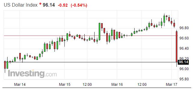 美联储宣布维持利率不变 政策声明显鸽派美元大跌