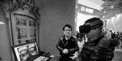 16日,廣東現代國際展覽中心,第35屆國際名家具展開幕。圖為買家體驗家具行業的虛擬現實技術。胡國球 攝