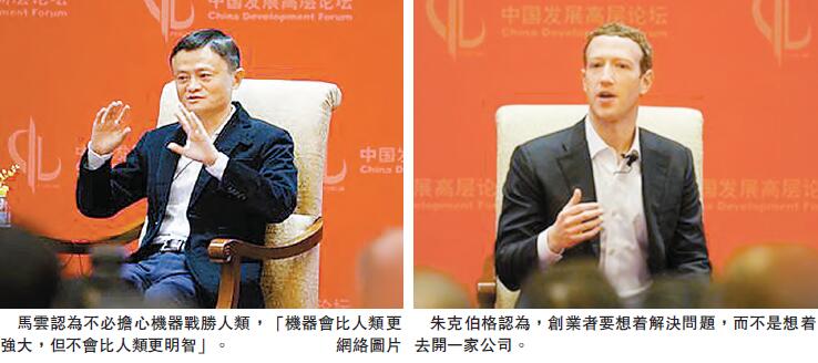 【香港商報网訊】昨日,中國發展高層論壇2016年年會在北京舉行,阿里巴巴董事局主席馬雲和Facebook創始人朱克伯格於此進行了一次跨國對話。對於前不久人工智能AlphaGo與李世石的圍棋人機大戰,馬雲認為,機器會比人類更強大,但不會比人類更明智;朱克伯格則認為,人類未來5到10年將取得巨大進步,而人工智能在未來亦將取得更大成就。