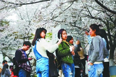 近日,武大的樱花吸引大批游客前来赏花。