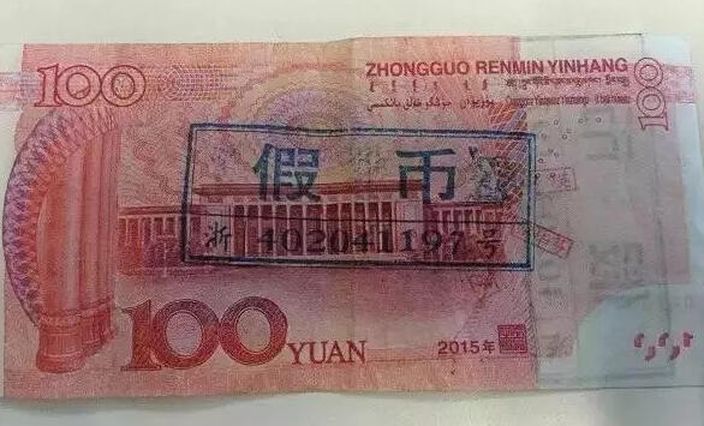 內地傳媒報道,在3月22日中午11時30分,騙徒走到紹興一所銀行表示要存放現金19000元,當職員將現金進行正、反雙面點算時,點鈔機出現假幣警報,「中招」的是一張2015年新版100元鈔票,號碼為QA36414810。職員隨即對比新版人民幣防偽點,發現該張假鈔「紙張軟綿綿,沒有真鈔的厚實感與質感」,為機製偽造鈔,當面以假幣收繳。