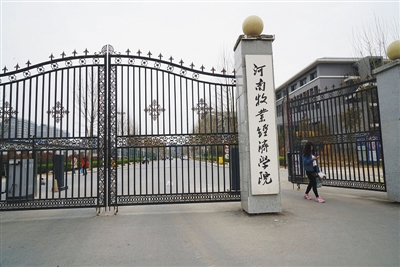 3月23日,一名學生走出河南牧業經濟學院。月初,該校大二學生鄭旭欠貸自殺引發關注。