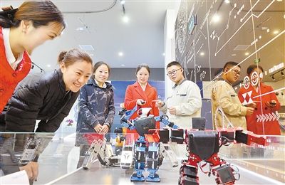 近日,香河機器人產業園正式投產運營,參觀者正在操作機器人完成人類運動動作。該產業園包括醫療服務機器人、建築安裝機器人等項目,涉及機器人產業鏈中的控制系統、伺服電機、減速器、系統集成、示范應用等多個領域,目前,成功引進21家國內外企業入駐,從機器人核心零配件到機器人本體、再到系統集成在內的上、中、下遊產業鏈等實現了協作共享。陳騰飛 張 洎攝