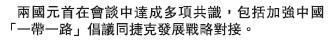 雙方一致認為,中國—中東歐國家合作與中歐全面戰略夥伴關係相輔相成。雙方同意堅持互尊互助互利精神,深化利益融合;努力實現中國—中東歐國家合作同「一帶一路」建設的全方位對接,推動中歐互聯互通合作,為促進亞歐互聯互通多作努力;要深化人文交流。