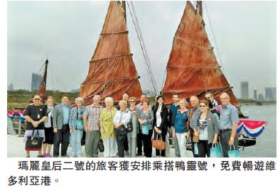 皇后邮轮公司现有船队,即玛丽皇后二号、维多利亚皇后号和伊莉莎白皇后号,相继於两日内到访香港。苏锦梁在酒会上,感谢邮轮公司对香港市场的信心,并表示3艘邮轮同时到港,充分显示香港作为邮轮旅客目的地的吸引力,也是邮轮公司的理想中转港。此豪华品牌的3艘邮轮将为香港带来约1.7万名旅客。
