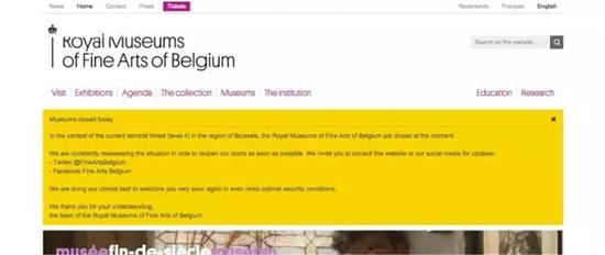 ▲ 3月22日的恐怖袭击爆炸给布鲁塞尔扎芬特姆机场造成了巨大的破坏(摄影:Sylvain Lefevre/Getty Images) 当地时间3月22日,在比利时首都、欧盟布鲁塞尔市郊扎芬特姆机场和市中心Maelbeek地铁站发生恐怖袭击。随后,布鲁塞尔关闭了市内的博物馆、图书馆以及公共艺术展览空间。目前至少已有34人丧生,200多人受伤。布鲁塞尔的恐怖袭击威胁指数已经被提升到最高等级四级。比利时首相Charles Michel表示:“我们所害怕的已经发生。”极端组织“伊斯兰国”事后声称对事件负责。 事发后,法国总统奥朗德称,布鲁塞尔的恐怖袭击是针对整个欧洲的袭击。恐怖袭击让欧洲乃至全球的安全危机进一步升级。 ▲ 公众在布鲁塞尔的交易所广场用粉笔画表达哀思 ▲ 公众在布鲁塞尔的交易所广场进行悼念活动(图片来源:卫报,Photograph: Gareth Fuller/PA) 用艺术悼念亡者 恐怖袭击发生后,社交媒体上涌现了众多悼念亡者的文字与图片,其中传播最广的一张插画师法国漫画家Jean Planteureax(通常被称为Plantu)的作品。《世界报》(Le Monde)于袭击发生后在Twitter上发布了这张作品,流着泪的法国国旗在拥抱着比利时国旗。作品上标志着巴黎去年遭遇恐怖袭击的日期11月13日和布鲁塞尔袭击发生的日期3月22日。 ▲ 法国日报《世界报》上刊登了一幅巴黎为布鲁塞尔祈福的插画(摄影:Instagram / Le Monde) 同时,社交媒体上出现了大量以哭泣的丁丁形象和比利时著名的“撒尿小童像”为素材创作的插画作品,来悼念此次不幸事件。《丁丁历险记》是比利时漫画家Georges Remi在1929创作的漫画故事,其中主角丁丁已经成为比利时的标志性形象。 ▲ 漫画家Kim创作的画作中,丁丁正在逃离烟雾 ▲“比利时在为她的孩子们哭泣”,法国人Bernard Mnich创作的插画 路透社通讯记者Sybille de la Hamaide在社交媒体上贴出的漫画 布鲁塞尔全市博物馆与画廊暂时关闭 来自布鲁塞尔艺术中心(Brussels Centre for Fine Arts)的一位发言人说,博物馆因“今天发生的悲剧”而暂时关闭,至于何时才能再次对外开放,仍取决于接下来每日的事态进展。布鲁塞尔政府建议所有博物馆维持闭馆状态直到接到新通知。 ▲苏丹艺术家Khalid Albaih创作的漫画 ▲ 布鲁塞尔艺术中心网站显示该馆在当地时间3月22日关闭 ▲ 比利时皇家美术博物馆也在袭击后关闭 比利时皇家美术博物馆(Royal Museums of Fine Arts of Belgium)在其网站上发布了一则公告:“布鲁塞尔地区的恐怖袭击威胁指数已经被提升到四级,比利时皇家美术博物馆将因此暂时关闭。” 位于布鲁塞尔的乐器博物馆(The Musical Instruments Museum)在推特上发布消息称,目前的警戒指数将维持至本周日(3月27日)。该博物馆在推特上说:“这意味着博物馆直到下周都将保持闭馆状态。请大家保重。”布鲁塞尔的其他机构也利用推特发布了各自的闭馆通知,其中包括五十周年纪念博物馆(Cinquantenaire Museum)、马格利特博物馆(Magritte Museum )以及自然科学博物馆。 私人画廊也在恐怖袭击发生后关闭。私人艺术收藏机构Maison Particulière在一份声明中说:“根据布鲁塞尔目前的状况,同时为了向死伤者表示哀悼,收藏家索拉格斯夫妇(Amaury and Myriam de Solages)决定关闭当前展览ta.bu。”该艺术中心将维持闭馆状态,直到下一个展览于4月21日开幕。 (来源:艺术新闻中文网)