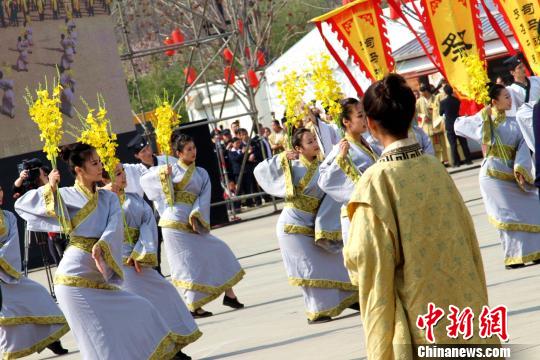 中新网陕西韩城3月31日电 (记者 田进)清明祭祖,拜谒先贤。“2016丙申年祭祀史圣司马迁大典”31日在司马迁故里陕西韩城市举行。包括司马迁后裔、民祭代表及海内外专家学者等万余人,齐聚当地共同缅怀史圣司马迁。