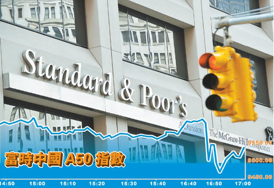 标普下调中国评级后,富时中国4月A50期货大幅下跌。