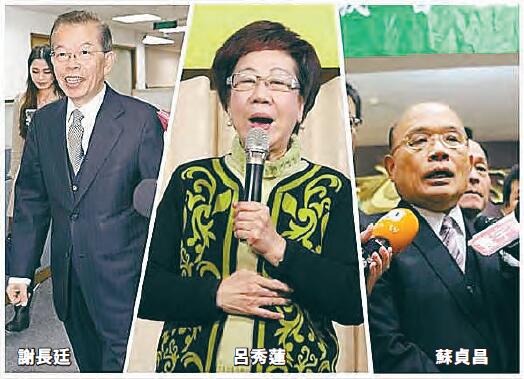 【环球时报驻台北特约记者 陈雯萱】“天王被外放”?台湾《自由时报》昨日报道称,陈水扁时代的几名绿营“老天王”将被蔡英文安排到海外任职,其中吕秀莲将出任驻巴拿马“大使”,谢长廷内定为台北驻日经济文化代表处代表,苏贞昌内定驻新加坡台北代表处代表。这是苏武牧羊还是老骥伏枥?岛内议论纷纷。不过当事人及民进党方面当日否认了相关报道。