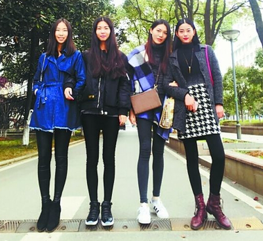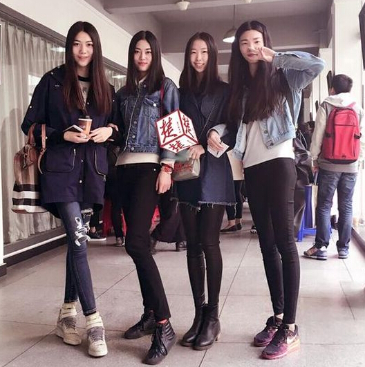武汉纺织大学服装设计与表演专业最近有四位来自同一班级的「高颜值大长腿」女生一同升读研究院,成为佳话。她们人人都有模特儿身材,身高175厘米以上,身材非常匀称,加上学业成绩优异,好友们合称她们为「双高美女学霸」。