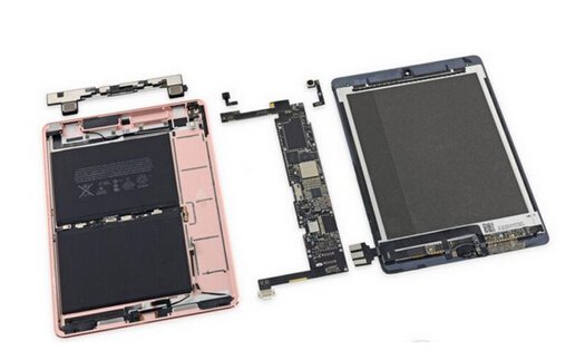 拆解結果顯示,iPad Pro 9.7的大多數內部空間還是留給了電池,它的27.91瓦時電池比Air系列的27.62瓦時稍大,但比12.9英寸Pro的38.8瓦時要小得多。