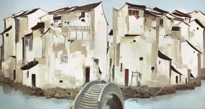 吴冠中巨幅油画 《周庄》。