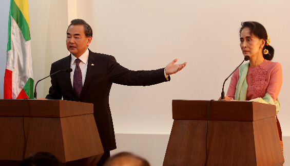 中国外交部长王毅於当地时间4月5日,在内比都与缅甸外长昂山素季共同会见记者时,应询介绍对中缅大项目合作的看法。媒体分析此次昂山素季国际外交“首秀”,指她将与中国的关系视为最大外交政策要务,此次会面也给双方吃了“定心丸”。