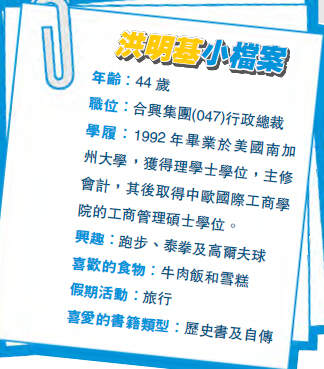 【香港商報網訊】無論是否贏在起跑線上,任何追求夢想的人必然碰到挫折,合興集團(047)行政總裁洪明基也不例外。「越敗越勇」成為他在創業路上的座右銘,在家族嚴厲教導下,加上他緊貼市場發展形勢,令合興在他的領導下,成為當今少數成功打入內地的本港食品集團之一。香港商報記者譚之穎