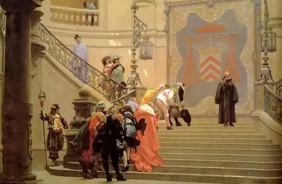 资料图 权力,它在还没有被人类关进宪政文明的笼子之前,长得究竟是个啥样儿? 这取决于你在哪个历史时空里晃荡,如果你是始皇帝的子民,那么权力的形象,就是朝你怒目挥鞭的那个狰狞秦吏。如果你是一世纪中叶的罗马人,权力的形象,是被惨叫的活人火炬照亮的尼禄皇帝,那张微笑的嗜血面孔。而在路易十三时代的法国,就是杰罗姆的画中,那个穿灰黑长袍的人了。 波士顿艺术博物馆里,在法国人让·莱昂·杰罗姆的这幅历史名画前,我凝视良久。画面中,一座宫殿大厅的台阶之上,所有的王公贵族都对一个灰袍僧侣毕恭毕敬,脱帽弯腰,注目行礼,而这个神秘的灰衣人却旁若无人,手捧圣经,诵读而行。他是谁?他就是权倾朝野的法国宰相、红衣主教黎塞留的心腹顾问,整个法国谈之色变的一个神秘人物,约瑟夫神父。 在小说三剑客中,大仲马对离他两百多年前,法国国王路易十三那位功高震主的权臣黎塞留,笔下不乏冷嘲热讽,但对黎塞留的神秘心腹,约瑟夫神父,大仲马在整部小说中只说了下面这一句话: 人们提到他的名字时总是悄悄的,因为他引起极大的恐怖。 为什么法国人会对一位僧衣芒鞋的虔诚教士如此畏惧? 因为,那个可怕的灰色身影,在当时的法国人眼中,就是通向巴士底狱死牢的一扇门,一扇随时会向你扑来、将你吞噬的地狱之门。 巴士底狱,这座始建于十四世纪的巴黎军事城堡,到了十七世纪上叶的路易十三时代,被担任首相的红衣主教黎塞留,正式改为国家监狱。它像一头巨大的野兽,绷着那张阴沉坚硬的石头脸,一动不动的俯瞰着整个巴黎。一旦被关进巴士底狱,你就变成了一名只有编号的无名囚犯,在不见阳光的地牢里,终年与老鼠和癞蛤蟆为伴,死后会被用化名埋葬掉,从人间无痕消失。你哪天如在巴黎的圣保罗墓地里遛达观光,看到的几世纪前墓碑上死者的姓名,其实有不少都是假的。另外,铁面人的传说,您听说过吧? 因此,恶名昭著的巴士底狱,在法国人心里的深浓阴影,才是大革命一开始,巴黎人就冲进去砸了它的一个重要原因。 而这幅画中的灰衣教士,约瑟夫神父,就是对整个巴黎、甚至全法国所有的秘密都了如指掌的那个人。他的触角,甚至遍布宫廷内部。所以大仲马才会在小说三剑客中,说红衣主教黎塞留,对法国宫廷里面秘密的了解,甚至要胜于那些豪宅的真正男主人,国王路易十三本人。难怪在宫廷之上,所有的王公贵族都在这位约瑟夫神父面前战战兢兢,毕恭毕敬。一旦此人嗅出谁对国王或红衣主教的敌意,那么这个倒霉鬼,就要在当晚住进巴士底狱了。 雄才大略的黎塞留,立志要建立一个空前强大的法国王权专制制度。他认为除强化中央集权外,绝无任何其他使国家走上伟大光荣之途的妙方良策。在成为首相后第一件事,就是建立起一个严密高效的情报机关,这个机关后来成为了法国的特务组织,深入到包括法国宫廷在内的社会各阶层,后来竟发展渗入到全欧洲各大国。这个机关的骨干主要由天主教士组成,负责打探国内外的各种消息。这个特务机关的首领,就是约瑟夫神父。 此人在法国历史上是个极神秘的幕后人物。他与黎塞留同为法国天主教会中人,很早就相识,黎塞留走上政途,还是从约瑟夫神父将他引荐给法国王太后美第奇开始的,两人是终生的政治挚友加知己。如果说黎塞留是国王的首相,那么约瑟夫神父就是首相黎塞留的首相,事实上,路易十三的法国所拥有的,是两个黎塞留。红衣主教黎塞留这位法兰西千古一相,因为给法国两百年欧陆霸主地位奠下了基石,已被后世法国人封神,而约瑟夫神父,却是神背后隐藏的那一尊神。人们称呼这位没有正式官职,也没有爵位品阶,在法国却只手遮天的教士为“灰衣主教”,把他与红衣主教黎塞留并视为法国最有权势的顶级人物。 在西方,灰衣主教已经变成了一个专有名词,喻指心腹人物,暗中掌权者,幕后操纵者。 约瑟夫神父 约瑟夫神父的能力,不仅仅在于做情报和秘密特工总监,他在帮助黎塞留首相经略欧洲三十年战争这一盘大棋时,经常作为高级特使,出访欧洲各大国与罗马教廷,极尽他纵横捭阖的外交天才。为法国的崛起而暗下决心抗衡德意志哈布斯堡王朝的黎塞留,看到德意志神圣罗马帝国皇帝费迪南,为了贪婪的帝国雇佣军元帅华伦斯坦的缘故,与帝国诸侯之间正闹得不可开交,下不来台,便假意向皇帝提出表示愿意在皇帝与诸侯之间做调解人,派出的法国特使,正是灰衣主教约瑟夫神父。他马上在皇帝与几位选帝侯之间往来奔走,最终在约瑟夫神父的劝说调解下,皇帝罢免了军事奇才华伦斯坦的军权,与选帝侯们达成了和解。而刚刚自以为天下太平的费迪南皇帝,不久就接到了一个惊人的消息,有北欧雄狮之称的瑞典国王古斯塔夫·阿道夫率兵入侵,费迪南皇帝这时才醒过神来,自知中了黎塞留和约瑟夫神父的离间计,恨恨说道:一个法国教士三言两语,就用他的十字架和念珠解除了我的武装! 传说年长黎塞留八岁的约瑟夫神父,在撒手人寰之际,无比悲伤的红衣主教黎塞留,曾希望以法国对神圣罗马帝国一场刚刚得到的战斗胜利喜讯唤起奇迹,红衣主教俯身床前轻唤:挺住,约瑟夫神父,布里萨赫城现在是我们的了!这位没有任何官阶和爵位,却用一袭灰袍,将法国笼罩在极度恐怖之下十数年的教士,双眼闪过了最后一道精光,便永远的合上了。 这个在法国能治小儿夜啼的恐怖人物,他的死讯,