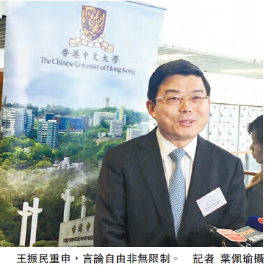 當被問到是否提提、說說「港獨」也不可以?王振民解釋,如果只是幾位市民個人吃飯、镕聊時談一談,可以當作是市民的自由,但如果是大範圍談,而且想令很多人想法一樣,即是煽動罪的含義。