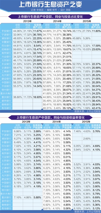 比如,在統計范疇內,5家城商行2015年投資類資產占生息資產平均比重比2014年已突破了10個百分點,達10.69%。錦州銀行投資類資產規模占比已經超過50%,盛京銀行、青島銀行等城商行投資類資產比重已經超越信貸資產。