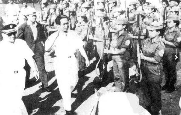 印尼共主席艾地(左二)在“九三零”大屠杀前夕检阅印尼共女志愿军。