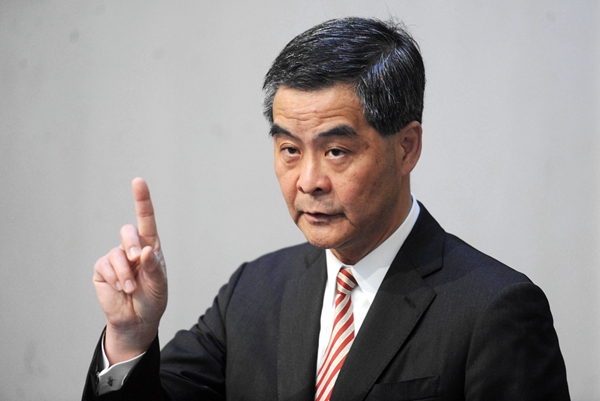 梁振英強調,自己作為特區的首長,有必要指出維護國家主權和領土完整的重要性。《基本法》開宗明義,在160條中的第1條已經講得很清楚。香港是國家不可分離的一部分,任何一個香港人都有責任維護《基本法》,更有責任維護《基本法》的第1條。