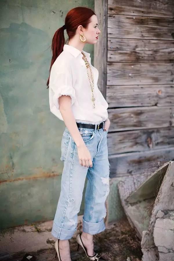 穿白色衬衫时不要太中规中矩,就算是塞进腰间也要灵活点
